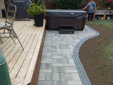A hot tub is a great way to enjoy your backyard space. Installing a hot tub pad to support the weight of your hot tub and an interlock walkway to be able to reach it is a sound investment for any home!